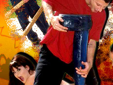 I'm sure you can tell from the pictures that Julie is the kind of slut that has no problem taking two dicks in her mouth at once, even if she has to open real wide to get them in. That being said, two cocks in her mouth is the least of her talents - she can take it in her ass too, wide, and deep. Just check out the picture of that little whore with the huge transparent rod shoved up her ass. That thing is stretching her tight little asshole wide open, getting it nice and ready for it to get fucked deep and hard.
